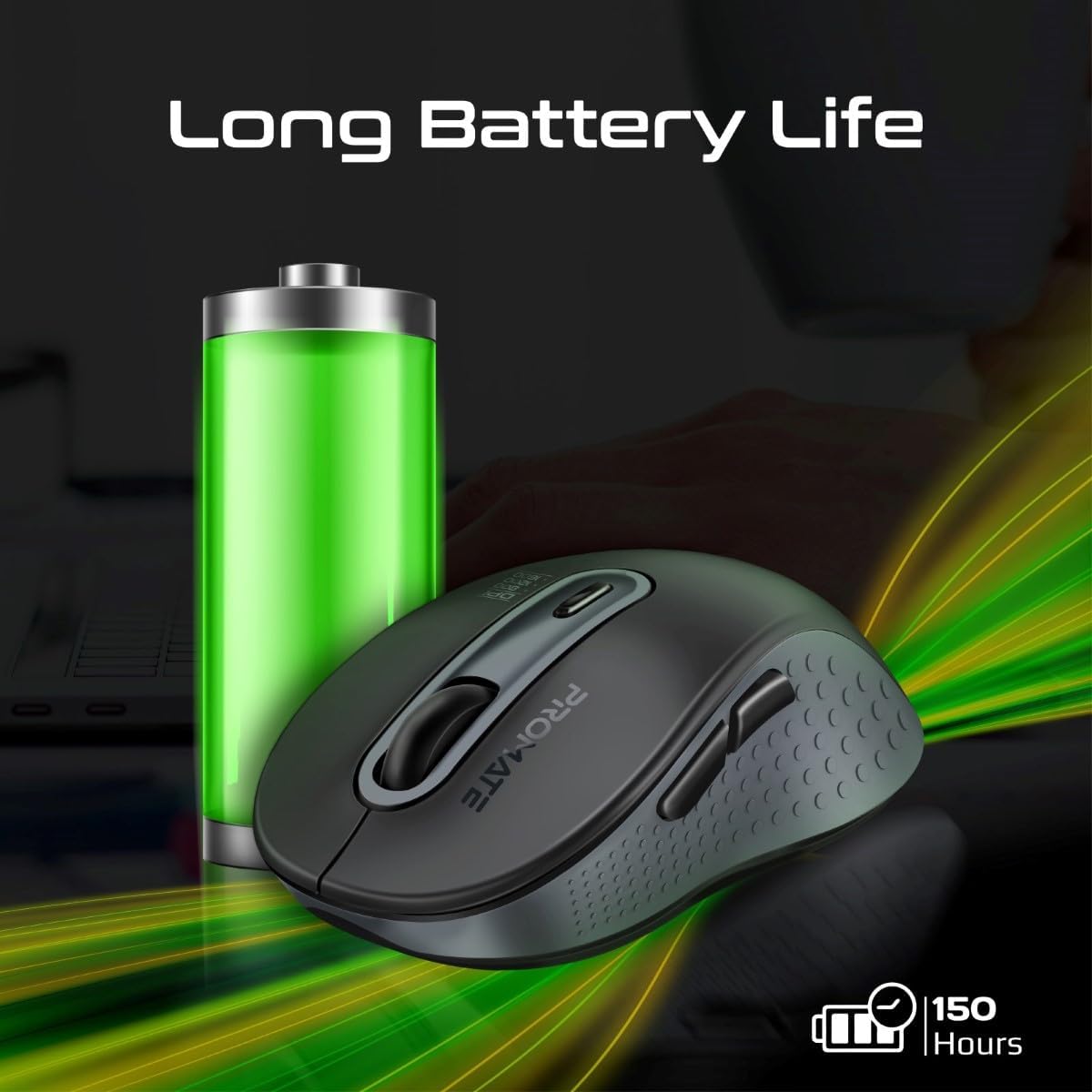Promate Wireless Mouse, Ergonomic Ambidextrous With Dual Mode Connectivity, Bluetooth V5.3, 2.4Ghz Transmission, Adjustable 1600DPI, 150H Working Time – Ken